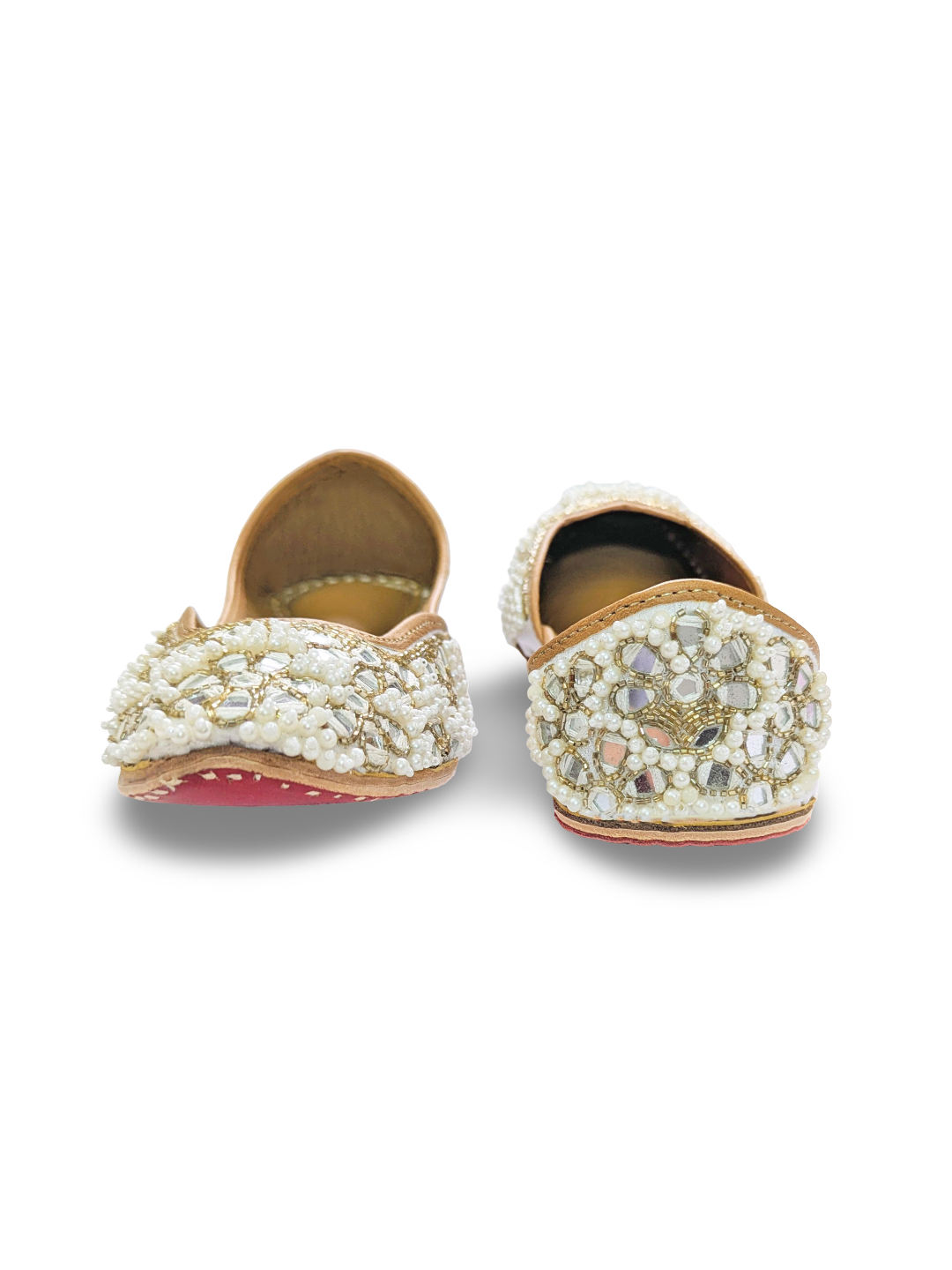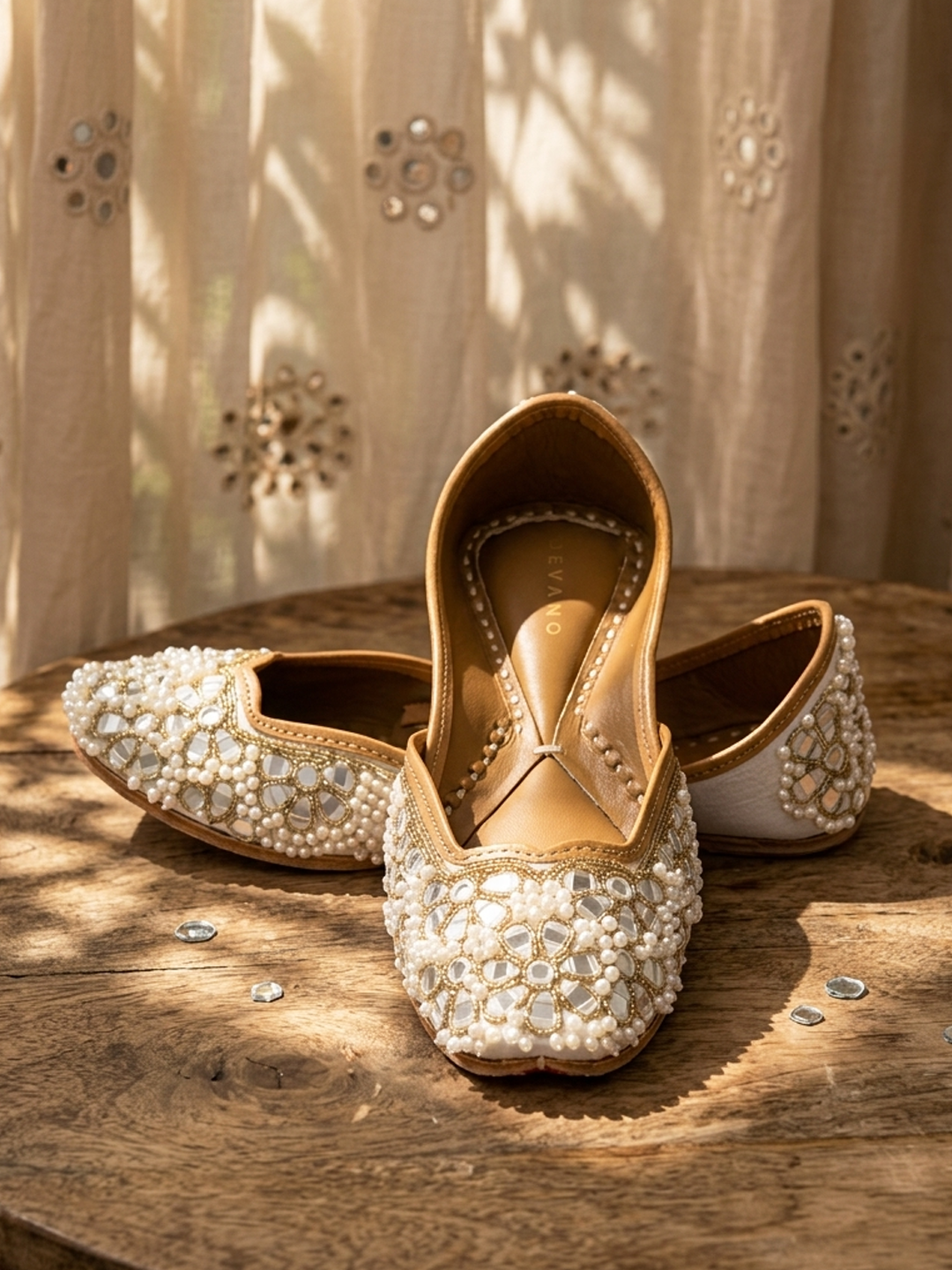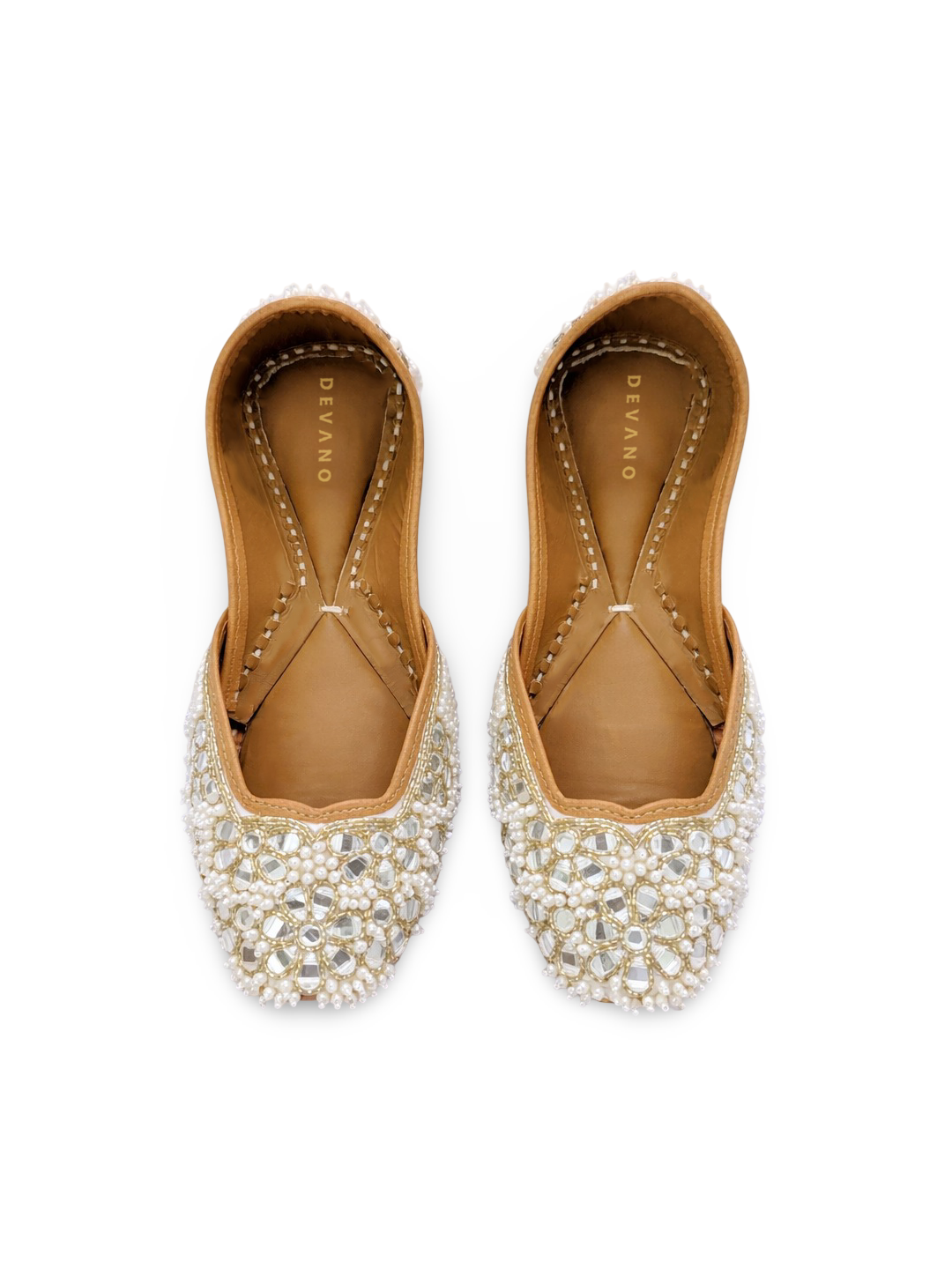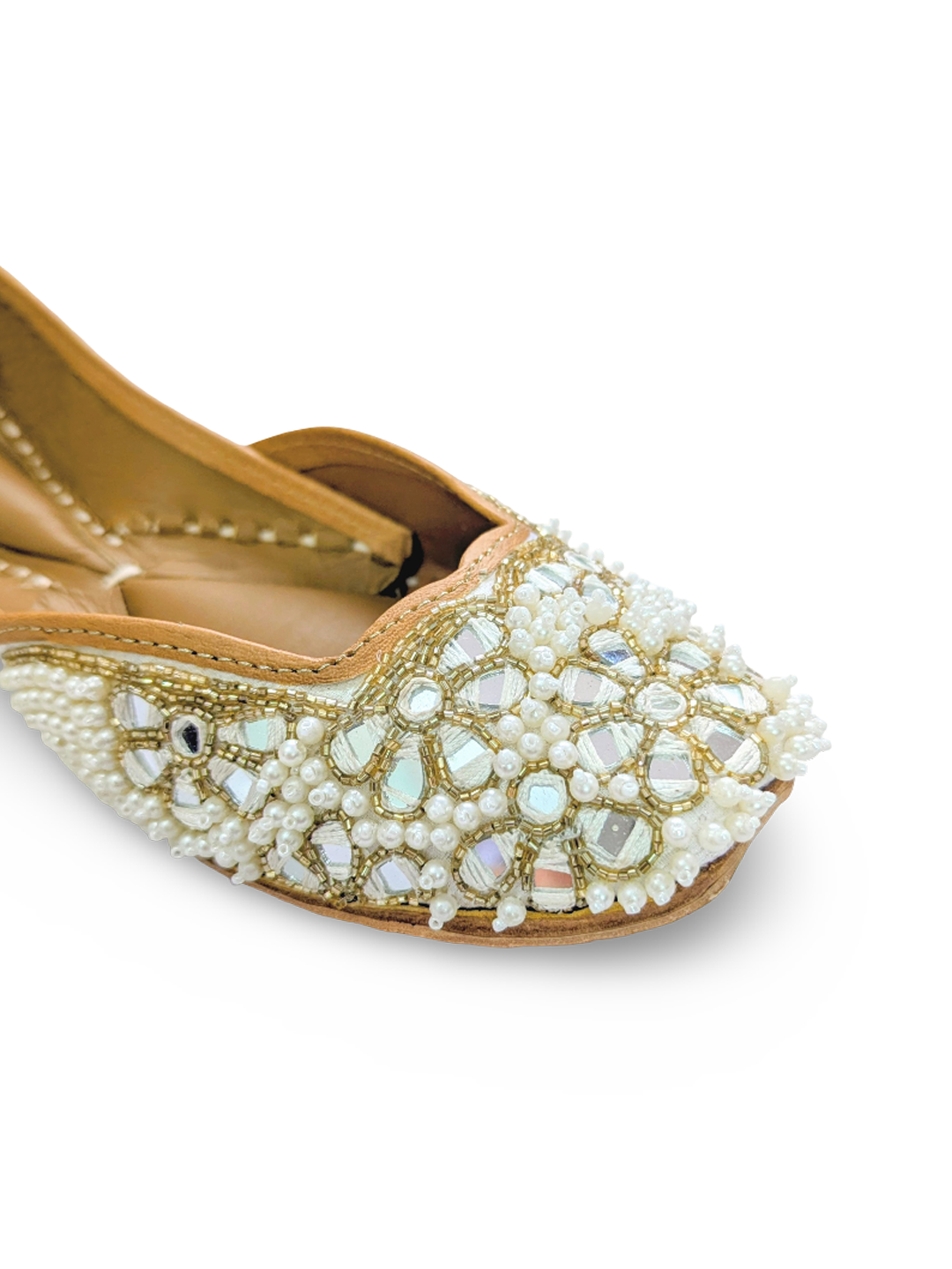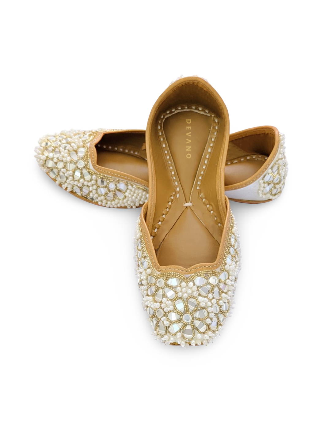 Heer Jutti | White Pearl & Mirror Jutti | Hand embroidered footwear for women – Devano Studio